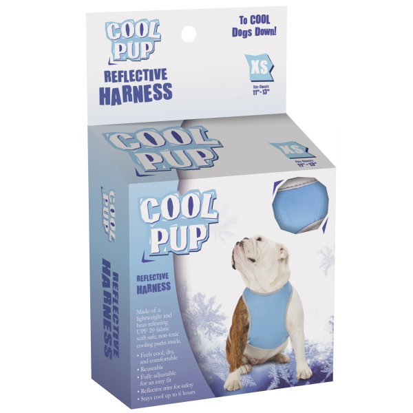 Cool Pup Reflective Cooling Harnesses, with quick-release plastic buckles, are fully adjustable for an easy fit, and each includes a nickel-plated D-ring for convenient leash attachment.