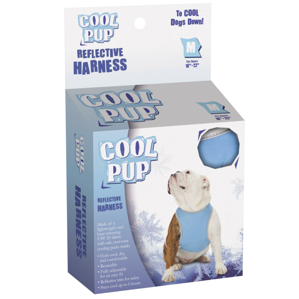 Cool Pup Reflective Cooling Harnesses, with quick-release plastic buckles, are fully adjustable for an easy fit, and each includes a nickel-plated D-ring for convenient leash attachment.