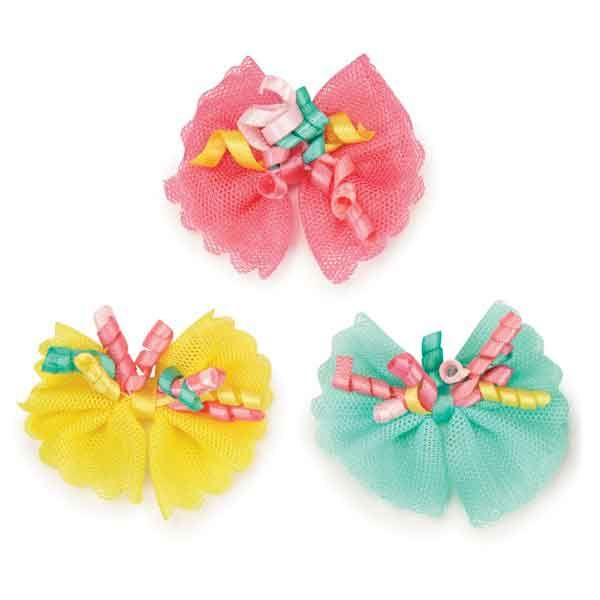 Bonita bows with curly ribbons are symmetrical for easy styling
