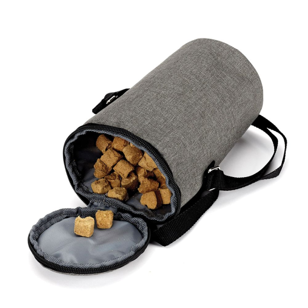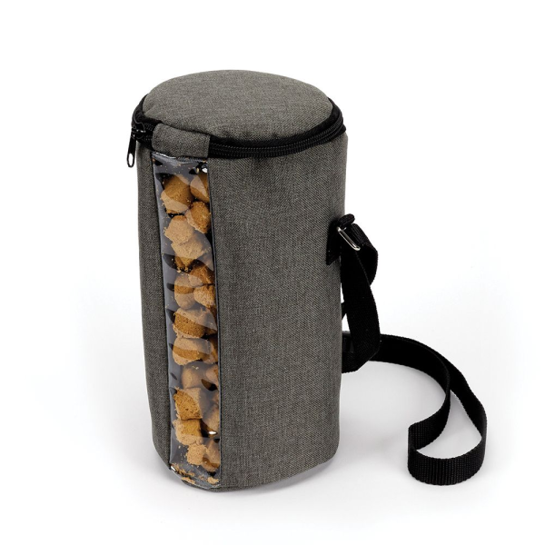 Keeps food fresh and secure with the Cruising Companion On the Go Food Bag. The travel-ready pouch has a zipper top to help you quickly fill and dispense food on the go. PVC window allows you to see how much food is in the bag. Water resistant fabric to keep food dry. Adjustable, hands-free carry strap allows you to easily bring the food with you on hikes while holding onto leashes.