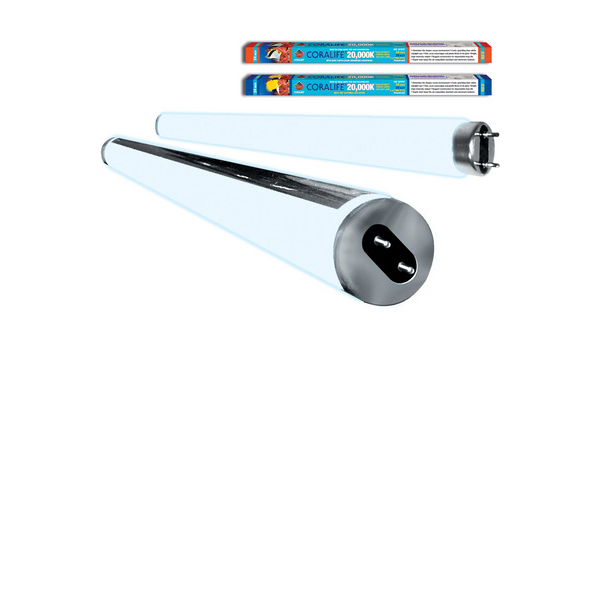 ENGLISH: The 20,000 Kelvin flouorescent lamp is a high-intensity purified super daylight lamp that simulates light in deeper waters. It casts a blue-white glow allowing light to penetrate deeper into the aquarium. Fluorescent lamps are energy-efficient and are engineered to provide superior performance and long life using the highest quality materials available to ensure consistently-rich color.