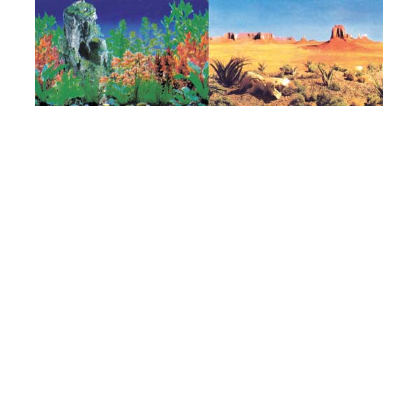 ESPAÑOL: Fondo de pecera con paisajes del mar o de la superficie terrestre para peceras de 25 galones. ENGLISH: backgrounds for fish tanks with scenery of earth or sea, for fish tanks up to 25 gallons.