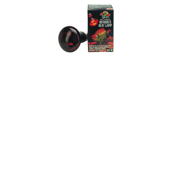 ESPAÑOL Bombillo Infrarrojo de 50 wat. Verdadero cristal rojo, este reflector de calor se centra más en su recinto y durante la noche reduce el deslumbramiento. Ideal para usar las 24 horas, fuente de calor para todos los tipos de reptiles, anfibios, aves o animales pequeños. Ofrece un poca luz visible para no molesta los patrones de sueño de sus mascotas. Excelente para la visualización nocturna de todo tipo de animales en cautividad..