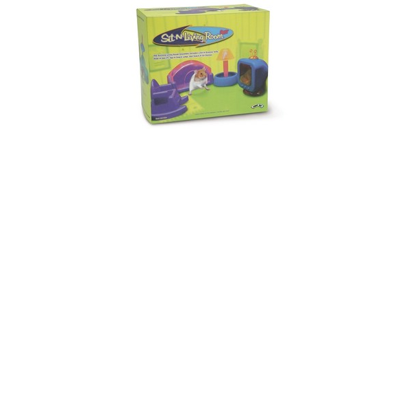 Make your pets at home with the Sit-N-Living Roon 4 pc. Set. All the "creature comforts" that your pet needs to decorate its home. Set includes a Hide-N-See TV, Sip-N-Snack Lamp, Snack-N-Sit Rocker and a Sit-N-Snooze Sofa. Watch your pet hamsters, gerbils and mice get comfy in their new "living room". All components are made of safe, durable, translucent plastic in a variety of cool colors.