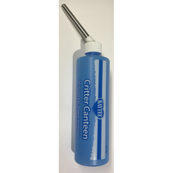 ESPAÑOL: Bebedero de Plastico Color Celeste Tiene un sistema anti goteo. Trae para colgar. 16 onzas ENGLISH: Critter Canteen Bottle hanger inside Drip Resistant BPA FREE 16oz
