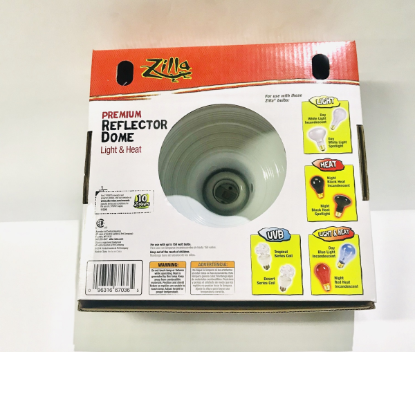 The black exterior finish is powder coated and fired for added luster and long life. An in-line on/off switch is positioned near the fixture for easy use. Add an R-Zilla Power Controller to automatically match on/off times to your pets life cycle (sold separately.) Each Black Dome is packaged in an attention-getting nested box for easier shelf storage and maximized merchandizing appeal.