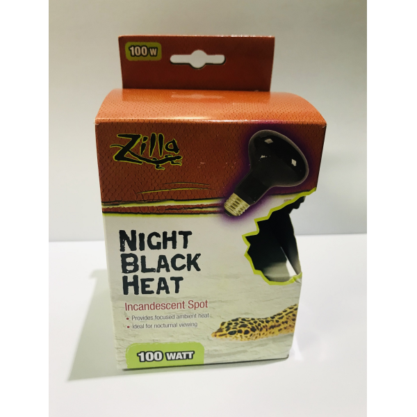 ENGLISH: Night Black Heat Incandescent Spot Bulbs. Emits a focused, 24-hour heat source ideal for reptile basking areas