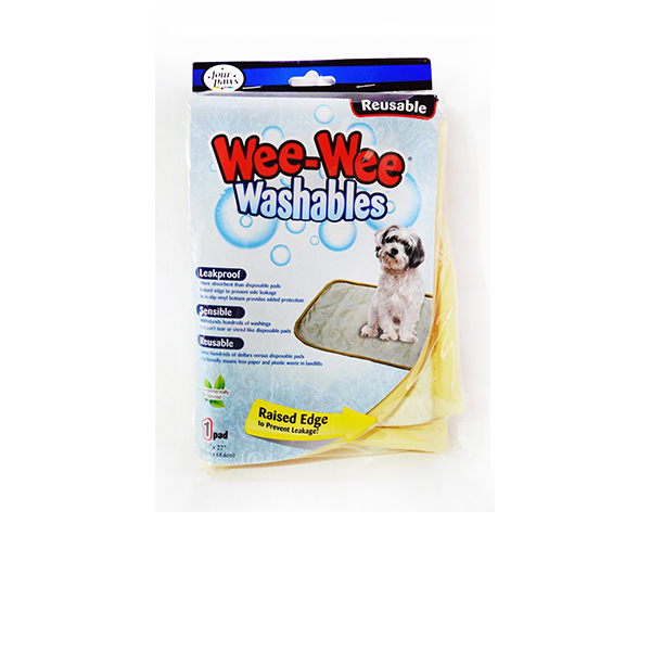 WEE WEE WASHABLES , LEAKPROOF MORE ABSORBENT THAN DISPOSABLE PADS RAISED EDGE TO PREVENT SIDE LEAKAGE NON-SLIP VINYL BOTTOM PROVIDES ADDED PROTECTION