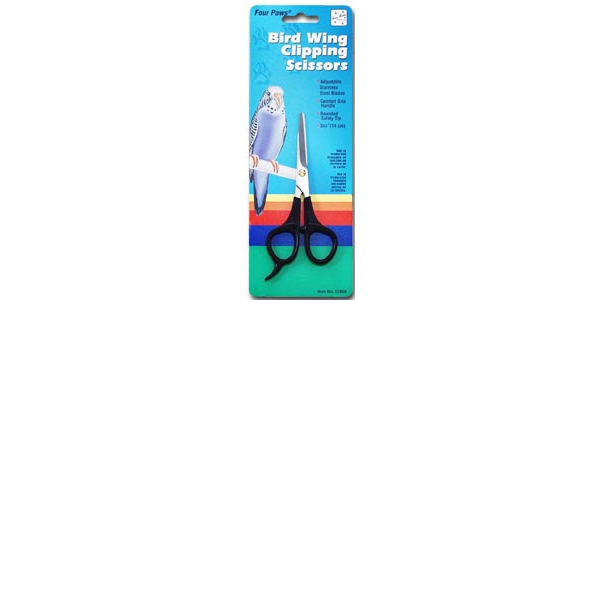 Bird wing clipping scissors 51/2 inches (14 cm) Adjustable stainless stel blades confort grip handle rounded safety tip FourPaws bird wing clipping scsissor are stainless steel with rounded tips for safety properly clipped wings will prevente your bird from flyng while allowing hime enought lift to glide downward decreasing his change of injury