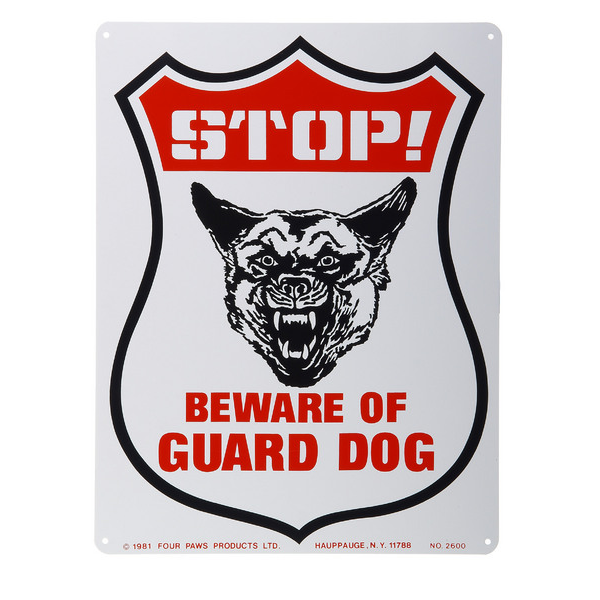 ESPAÑOL: Rotulo de Señales de Seguridad de Aluminio: Alto- Cuidado con el Perro Guardian. Medidas: