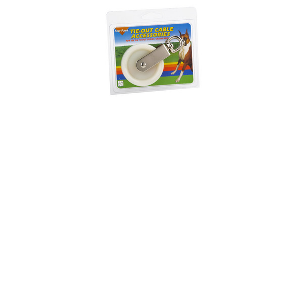 ENGLISH: Safety swivel pulley. Four Paws safety pulley has a swivel end to allow for safety so the animal will not tangle hinself within the cable. Four paws safety pulley can also be used for many other things around the home.
