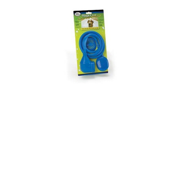 ENGLISH: The Magic Coat Indoor Doggy Shower easily connects to bathtub faucets. No tools required! Includes entle spray cleaning head with comb attachment and 5 foot hose.