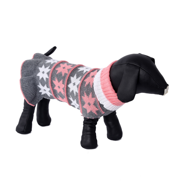 Español: Hermoso vestido estampado tonos grises y rosados. Medidas xsmall 18 cm cuello 31 cm pecho 20 cm espalda Fibra acrilica.