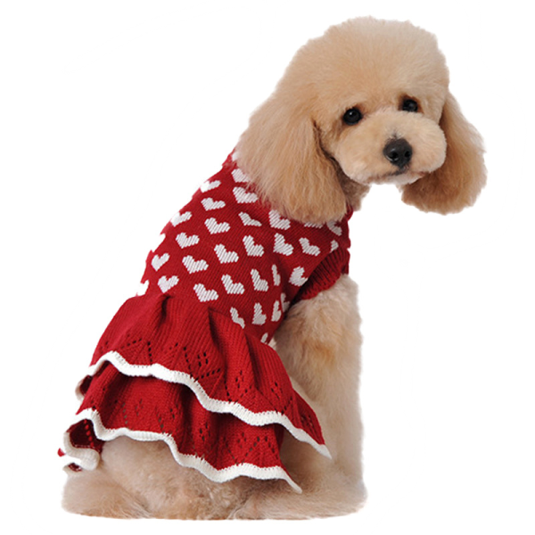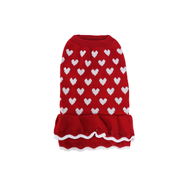 Hermoso vestido estampado rojo con corazones blancos.