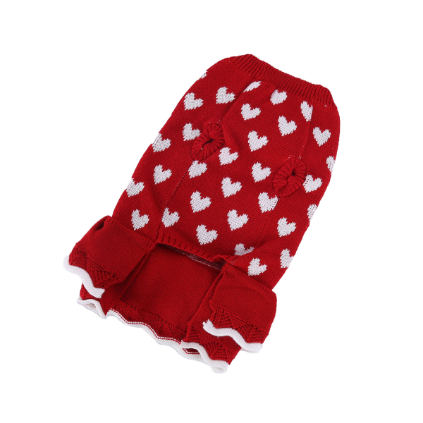 Hermoso vestido estampado rojo con corazones blancos.