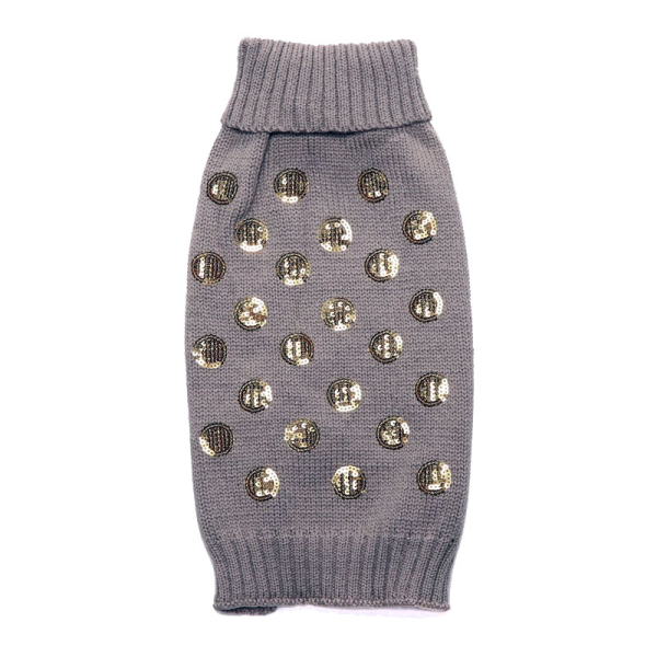 Sueter gris con circulos de lentejuelas.