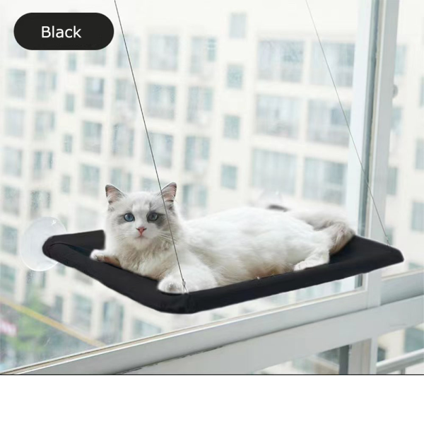 HAMACA PARA GATO NEGRA SP-BA013-6 Material: Tela de oxford, polypropileno y acero. Medidas: 30x55cm Peso máximo 17.5 kg
