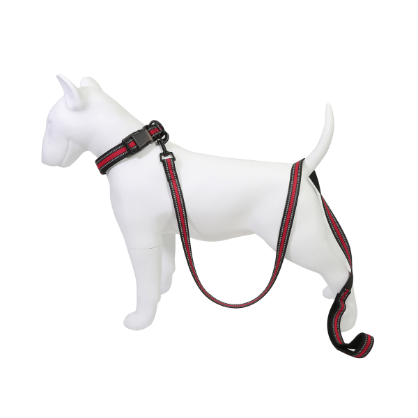 CORREA ROJA CON NEGRO SMALL SP-LA024-1 Material: nylon, neopreno, rallas reflectivas. Medidas: Small: ancho 1.5 cm x largo 120 cm Medium: ancho 2.0 cm x largo 120 cm Large: ancho 2.5 cm x largo 120 cm