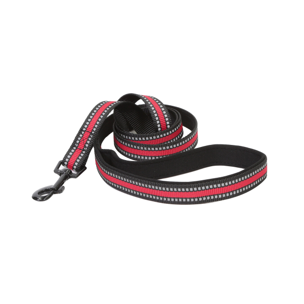 CORREA ROJA CON NEGRO MEDIUM SP-LA024-1 Material: nylon, neopreno, rallas reflectivas. Medidas: Small: ancho 1.5 cm x largo 120 cm Medium: ancho 2.0 cm x largo 120 cm Large: ancho 2.5 cm x largo 120 cm