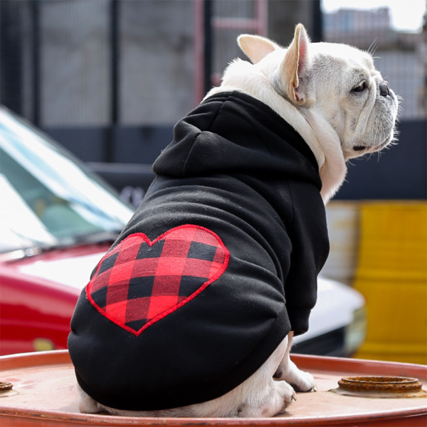 Sudadera negra con corazon a cuadros con rojo.