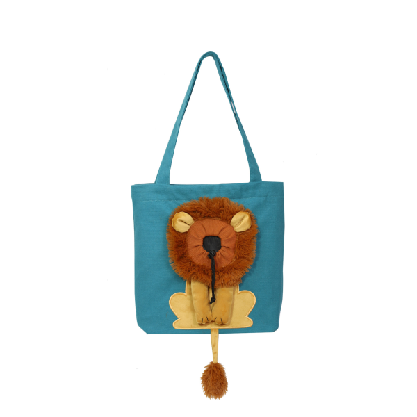 Bolso cabeza de leon turqueza. Material: Canva y algodon. Medidas: Small: 40 cm x 35 cm Large: 44 cm x 40 cm