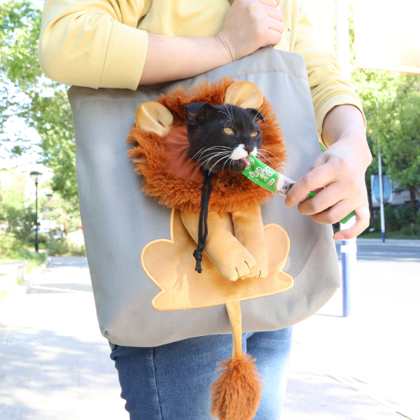 Bolso cabeza de leon gris. Material: Canva y algodon. Medidas: Small: 40 cm x 35 cm Large: 44 cm x 40 cm