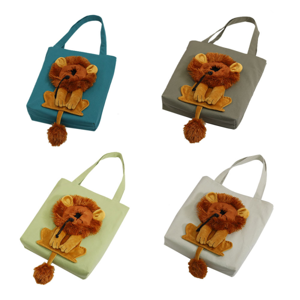 Bolso cabeza de leon verde. Material: Canva y algodon. Medidas: Small: 40 cm x 35 cm Large: 44 cm x 40 cm