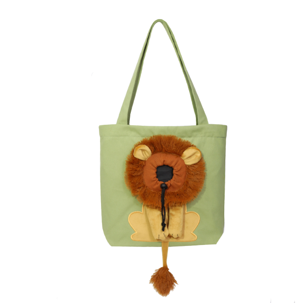 Bolso cabeza de leon verde. Material: Canva y algodon. Medidas: Small: 40 cm x 35 cm Large: 44 cm x 40 cm