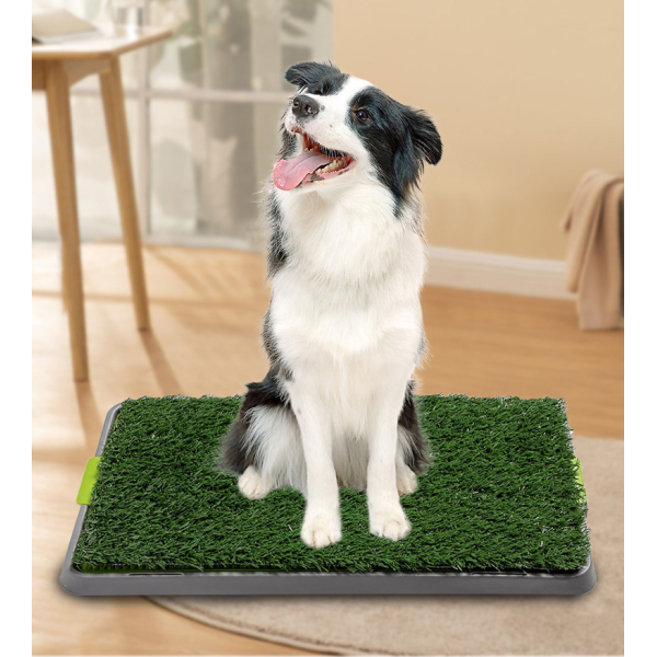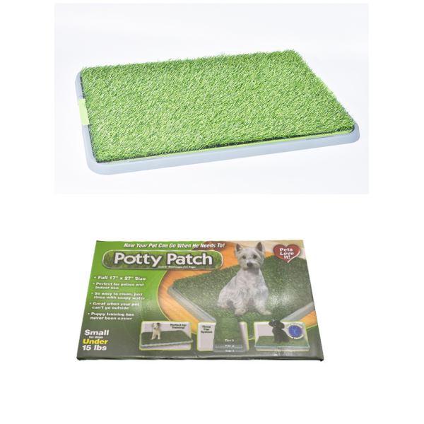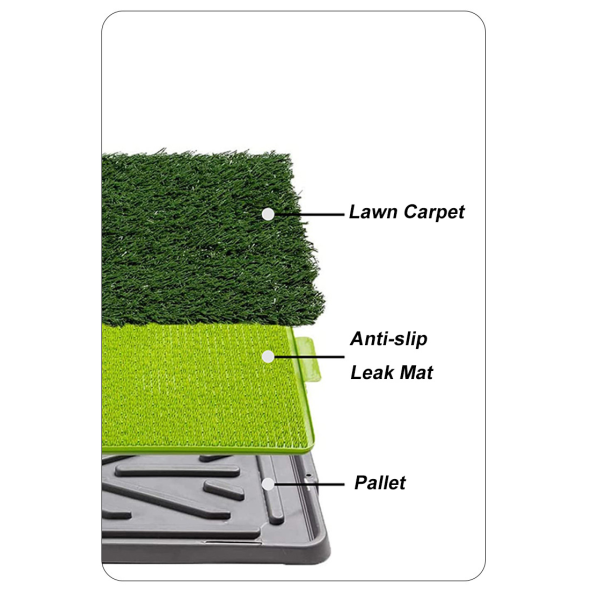 Bandeja de entrenamiento con zacate artificial 3 piezas. Material: Plastico y zacate artificial. Medidas: 43 cm x 68 cm.
