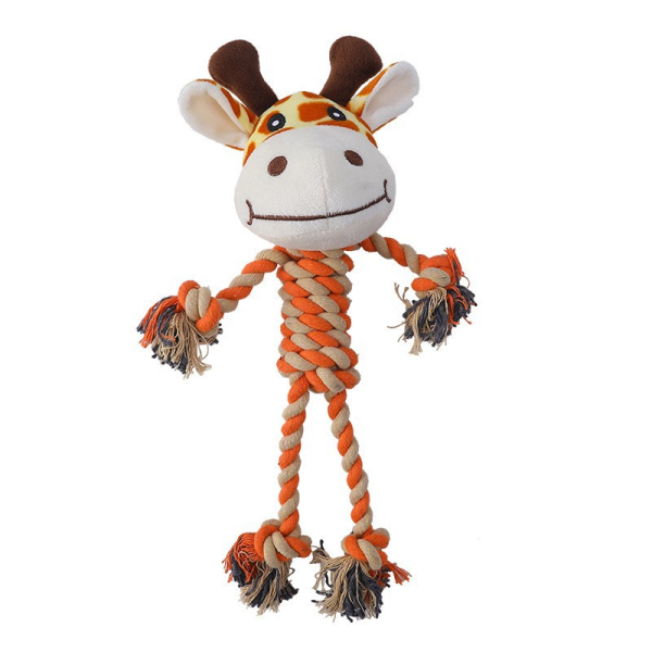 Juguete en forma de jirafa con cuerda. Material: poliester, pp y algodón. Medida: 26 cm x 11 cm, x 10 cm.