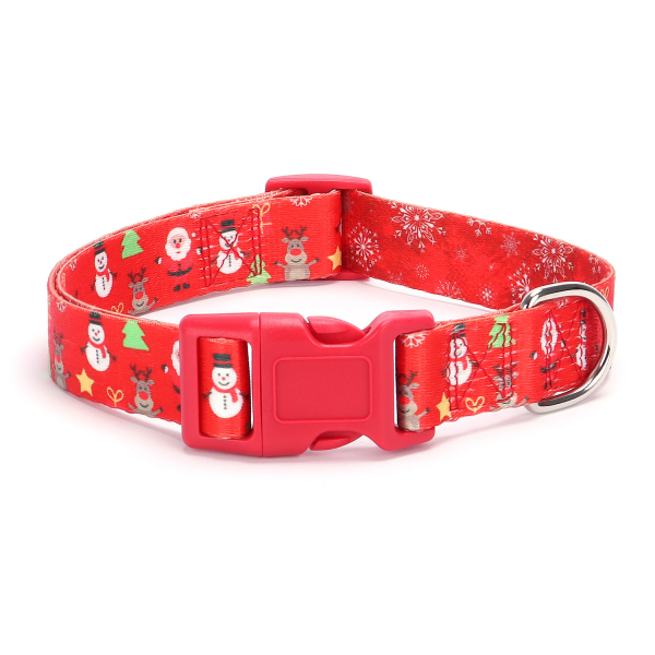 Collar navideño, poliester. Medidas: Small: ancho 1.5 cm, ajustable 28-40 cm. Medium: ancho 1.5 cm, ajustable 32-50 cm. Large: ancho 1.5 cm, ajustable 36-60 cm. Xlarge: ancho 1.5 cm, ajustable 42-70 cm.