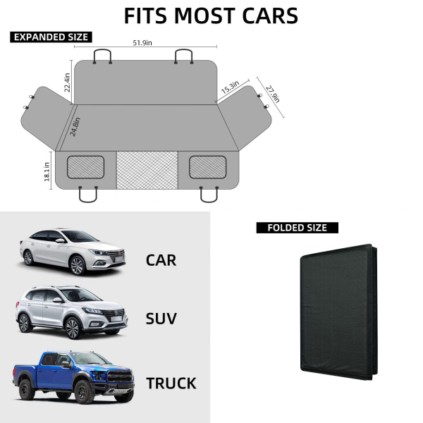 Cobertor para asiento de carro rigido gris. Oxford impermeable, esponja, placas de soporte de carga, fondo antideslizante Medidas 132 cm x 165 cm.