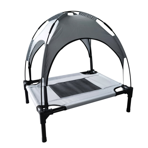 Cama elevada con techo. Medidas: Small: 61 cm x 46 cm x 18/60 cm 20 kg Medium: 76 cm x 61 cm x 18/70 cm 25 kg Large: 91 cm x 76 cm x 18/85 cm 35 kg Xlarge: 112 cm x 91 cm x 23/110 cm 45 kg
