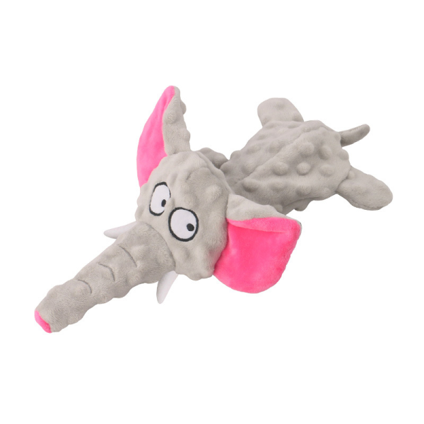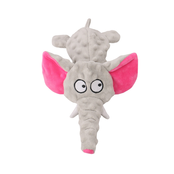 Juguete de elefante gris con chirriador. Material: poliester y chirriador. Medidas: 30 cm x 19 cm.