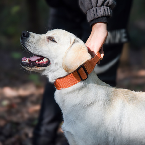 Collar con agarradera. Material: nylon y hebilla de zinc Medidas: Medium: ancho 3.8 cm, ajustable 37-45 cm Large: ancho 3.8 cm, ajustable 43-55 cm Xlarge: ancho 3.8 cm, ajustable 49-65 cm