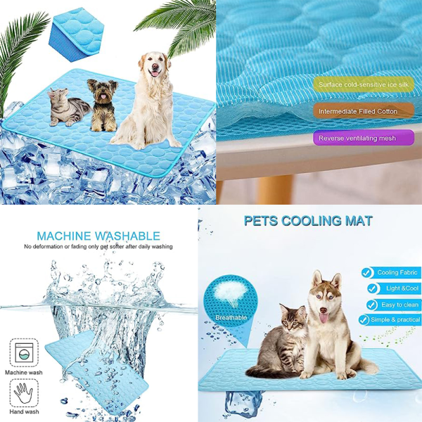 Alfombra refrescante. Materia: Tejido coolcore, que son telas que se mantienen frescas, algodon y tela de mall. Medidas: Medium: 60 x 50 cm Large: 70 x 55 cm Xlarge: 100 x 70 cm 2Xlarge: 150 x 100 cm