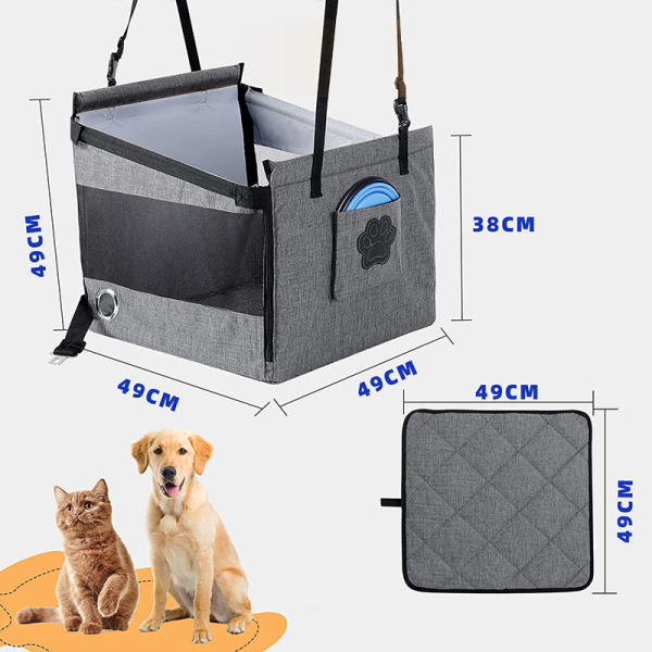 Booster para carro. Material: tela de oxford resistente al agua, tela de malla transpirable,tubos de pvc. Medidas: 49 cm x 49 cm x 49 cm x 38 cm