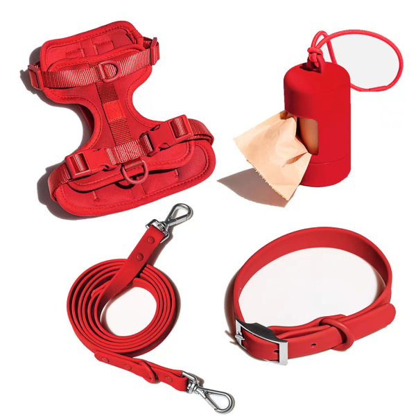 Juego de pechera, collar, correa y bolsito.