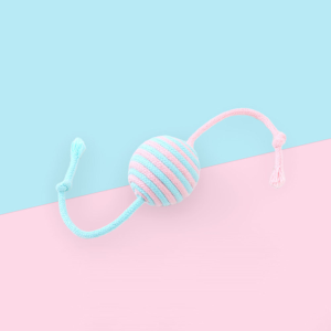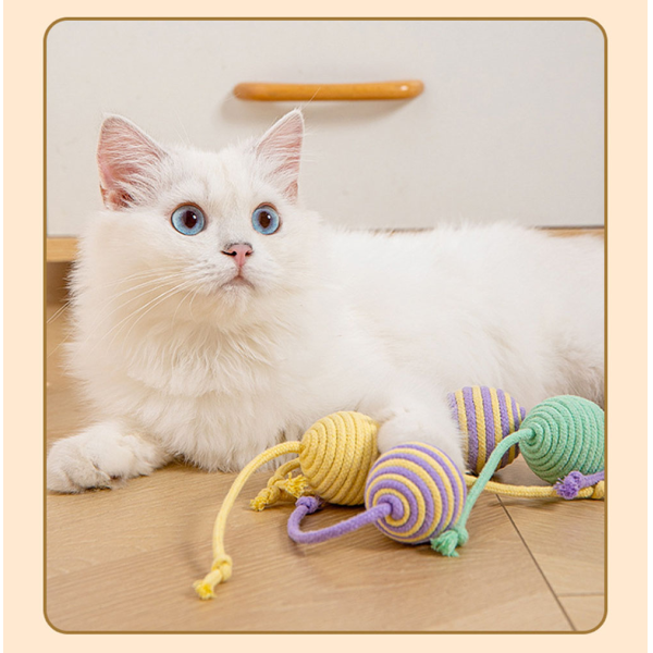 JUGUETE PARA GATO BOLA CON CUERDA 4.5 CM DIAMETRO PELOTA Y CUERDA DE ALGODON Y SISAL, CON UNA PIEZA SONORA EN SU INTERIOR PARA ESTIMULAR EL JUEGO.