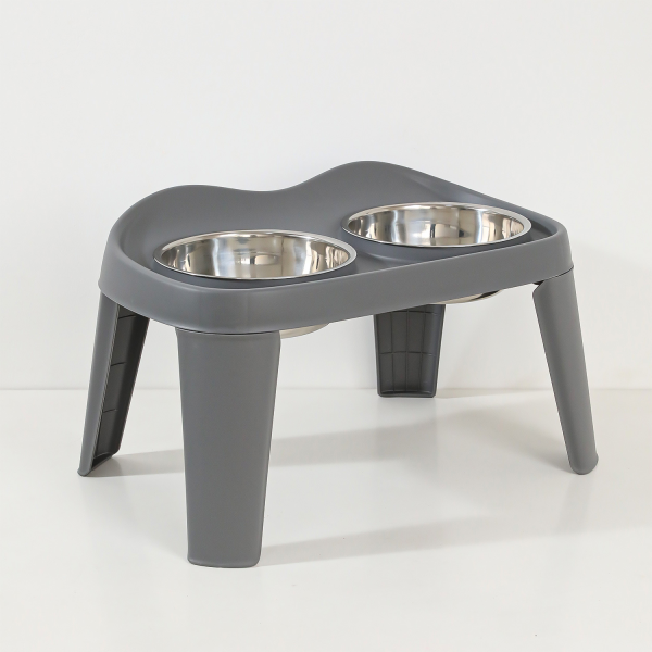 COMEDERO DOBLE ELEVADO GRIS TAMAÑOS: SMALL 34 X 22 X 17 CM MEDIUM 44 X 28 X 24 CM LARGE 50 X 31 X 32 CM MATERIAL: ACERO INOXIDABLE, POLIPROPILENO (PP) Y CAUCHO TERMOPLASTICO (TPR)