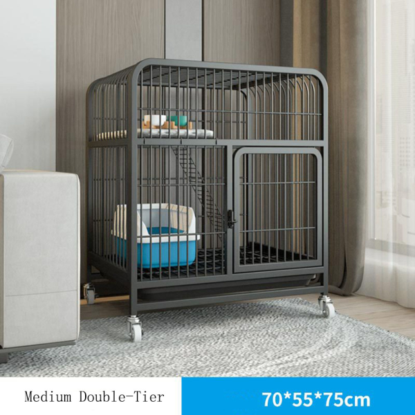 JAULA PARA MASCOTA DOBLE NIVEL 70 X 55 X 75 CM MATERIAL: HIERRO GALVANIZADO