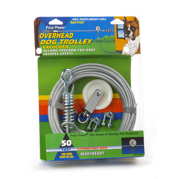 Trolley Exerciser - Heavy Weight Steel cable wrapped in plastic with special pulley for dogs over 50 pounds extends until 50 fts (15.24 m)