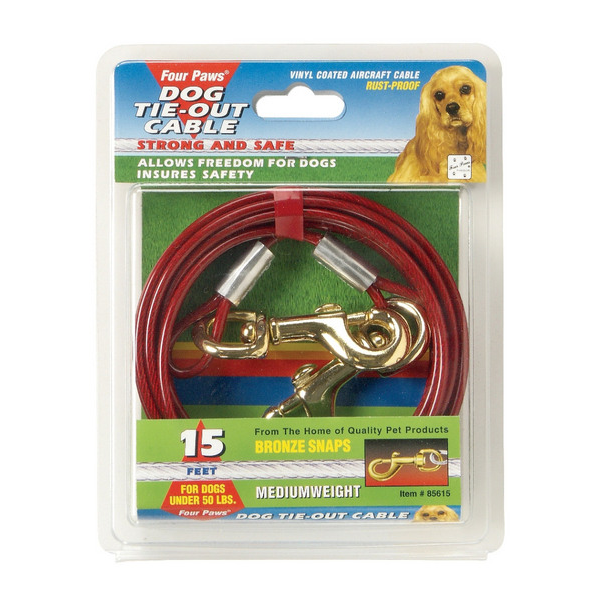 Tie Out Cable - Medium Weight Red 15 ft (4,572 m) Four Paws Dog Tie Out Chains & Cables ensure pet safety while allowing complete freedom. These rust-proof chains are available in a variety of lengths and weights.