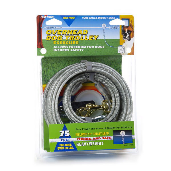 Trolley Exerciser - Cable de acero envuelto en plástico rojo con polea especial para perros con un peso menor a las 50 libras. Se extiende hasta 75 pies (22.86 metros).