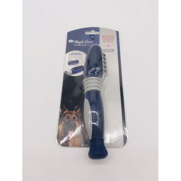 The Magic Coat Mat Breaker with Adjustable Blade works best on stubborn mats and tangles. Mats can hurt your dog if not managed. Reversible blades allow for multiple directional use while grooming your dog. Additionally, it can be used for right or left-handers with the push of a button. Ideal for medium, long, curly or wiry coat types.