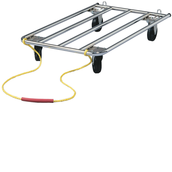 Construido con acero inoxidable tubular, ruedas resistentes de 5 ", manija de nylon de alta resistencia y una resistente asa de alambre.