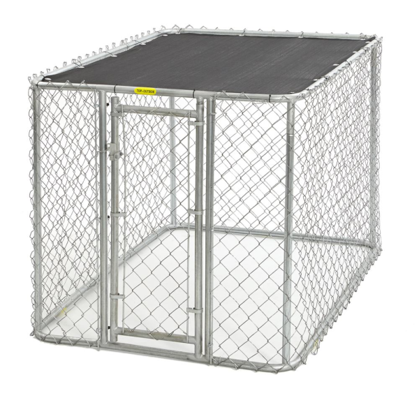 Secure outdoor kennel with a strong, steel frame and safe rounded corners. Includes a woven polyethylene sunscreen, that provides 80-percent sunblock.