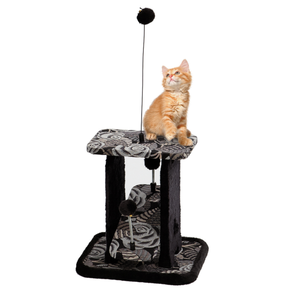 Fun cat activity center with a fun teeter-totter & jingle bells attached to a bounce back spring to promote play.