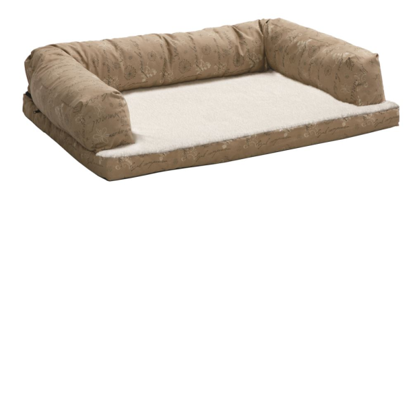 Exquisitely soft fleece and extra-cushioned support bed with designer script print fabric.