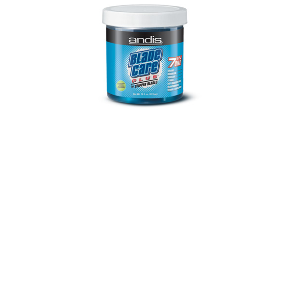 ENGLISH BLADE CARE PLUS Net Wt. 16.5 fl. oz. (488ml) FOR CLIPPER BLADES. 7 IN ONE (Coolant, Deodorizer, Lubricant, cleaner, Rust Preventative, Decontaminate, Vitamin E Enriched) DIRECTIONS FOR USE, Do not submerge any part of the clipper hand piece. Only go deep enough to cover steel/ceramic cutters. With clipper running, dip blade only into Andis Blade Care Plus for 10 seconds and let hair and debris float away. Remove from solution and wipe blades dry. Reapply Andis Cliper Oil for further lubrication, wipe dry. Decontaminate, removes harmfull bacteria build-up. Lubricate, blade care plus leaves a light lubricating film on blades that reduces friction,smoothes clipping action and prolongs blade file.Warning, causes eye irriations. Do not get into eyes. Avoid skin contact. Avoid contamiation of foodstuff.